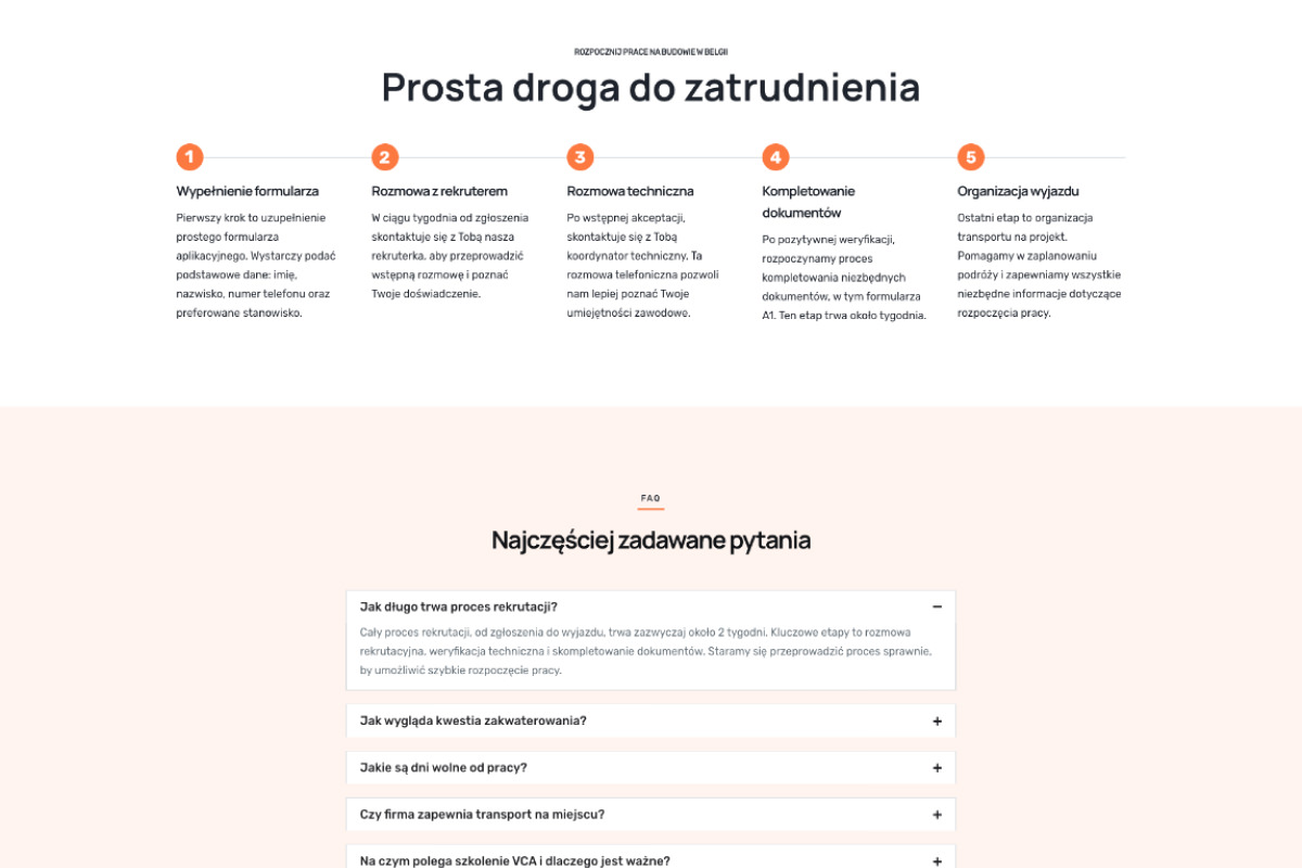 W ramach projektu landing page opracowaliśmy również angażujące treści, które w pełni oddają charakter i wartości Forcebet. Podkreśliliśmy kluczowe atuty firmy, takie jak posiadane certyfikaty VCA i SCC, oraz wieloletnie doświadczenie w delegowaniu pracowników za granicę. Wszystkie treści zostały starannie zoptymalizowane pod kątem wyszukiwarek internetowych, co znacząco poprawi widoczność firmy w sieci.